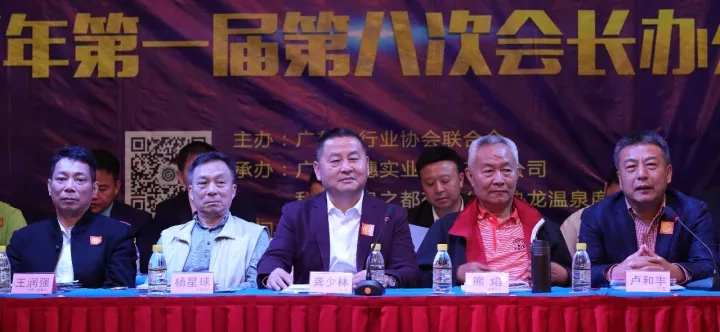 11月11日,广东省行业协会联合会第一届第八次会长办公会议在河源市和平县热龙温泉度假村举行。会议由会长龚少林主持并作工作报告。联合会名誉会长熊焰将军、杨星球将军和书法家黑子老师,联合会主席、广东金穗实业集团有限公司董事长卢和丰,联合会主席、广东聪明人集团董事长周志明,联合会主席、监事长、广东集美设计工程有限公司总经理、教授王润强及执行会长等会领导共183人出席会议。河源市政府秘书长、办公室主任程越华、和平县委书记陈劲松、县委常委、常务副县长刘大荣、副县长曹敏捷等到场祝贺。